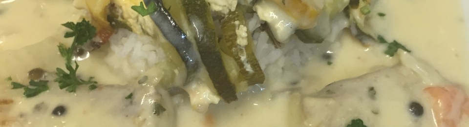 S’il le faut, vous pouvez lier la sauce avec toujours ma fameuse technique, farine avec un peu d’eau froide diluée dans un bol. Dans ce cas, laissez bouillir un peu pour cuire la farine, vérifiez de nouveau l’assaisonnement et remettez vos morceaux de lotte dans la sauce.