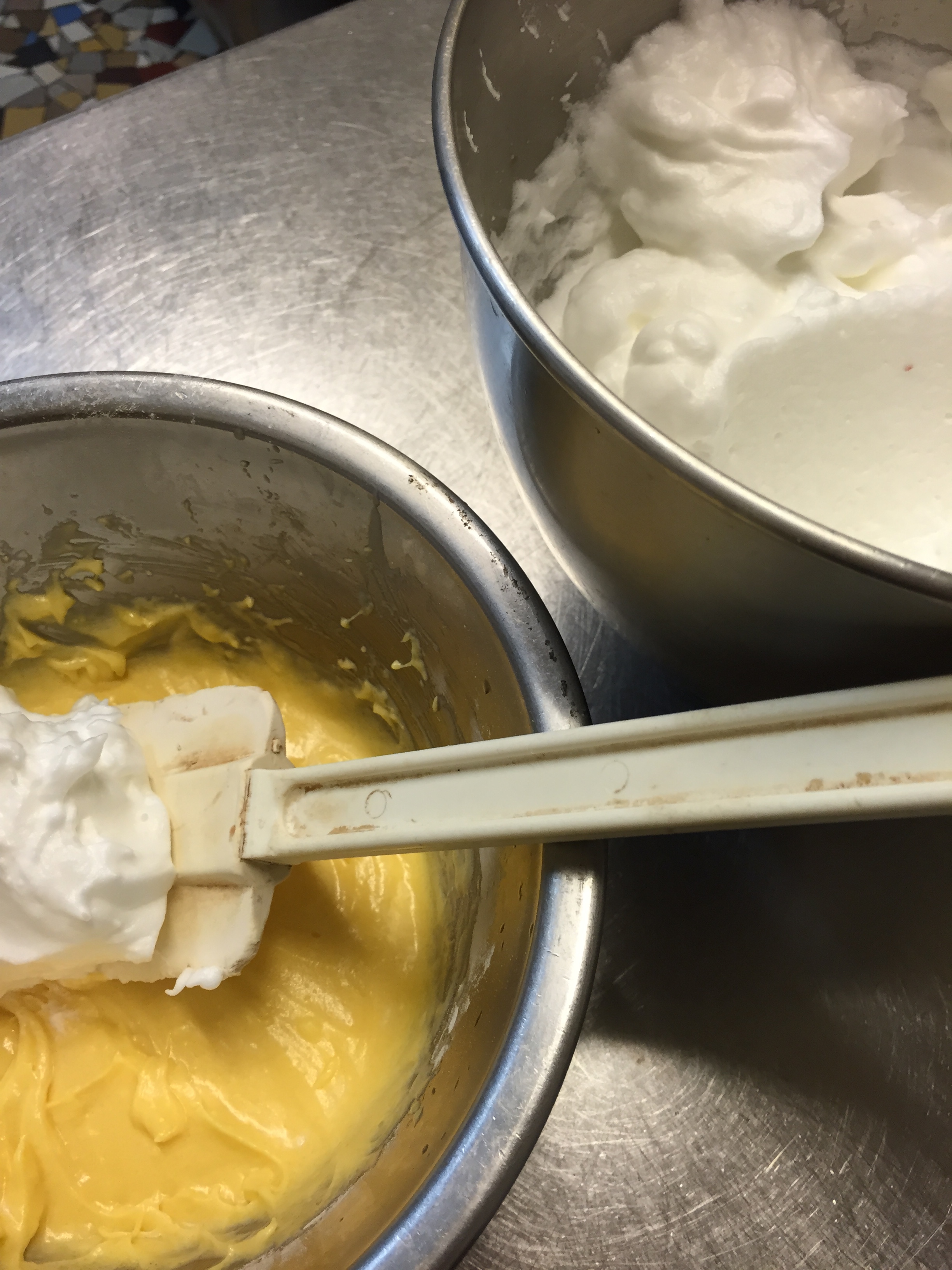 Remuez bien. Montez les blancs en neige et incorporez-les délicatement à votre préparation.