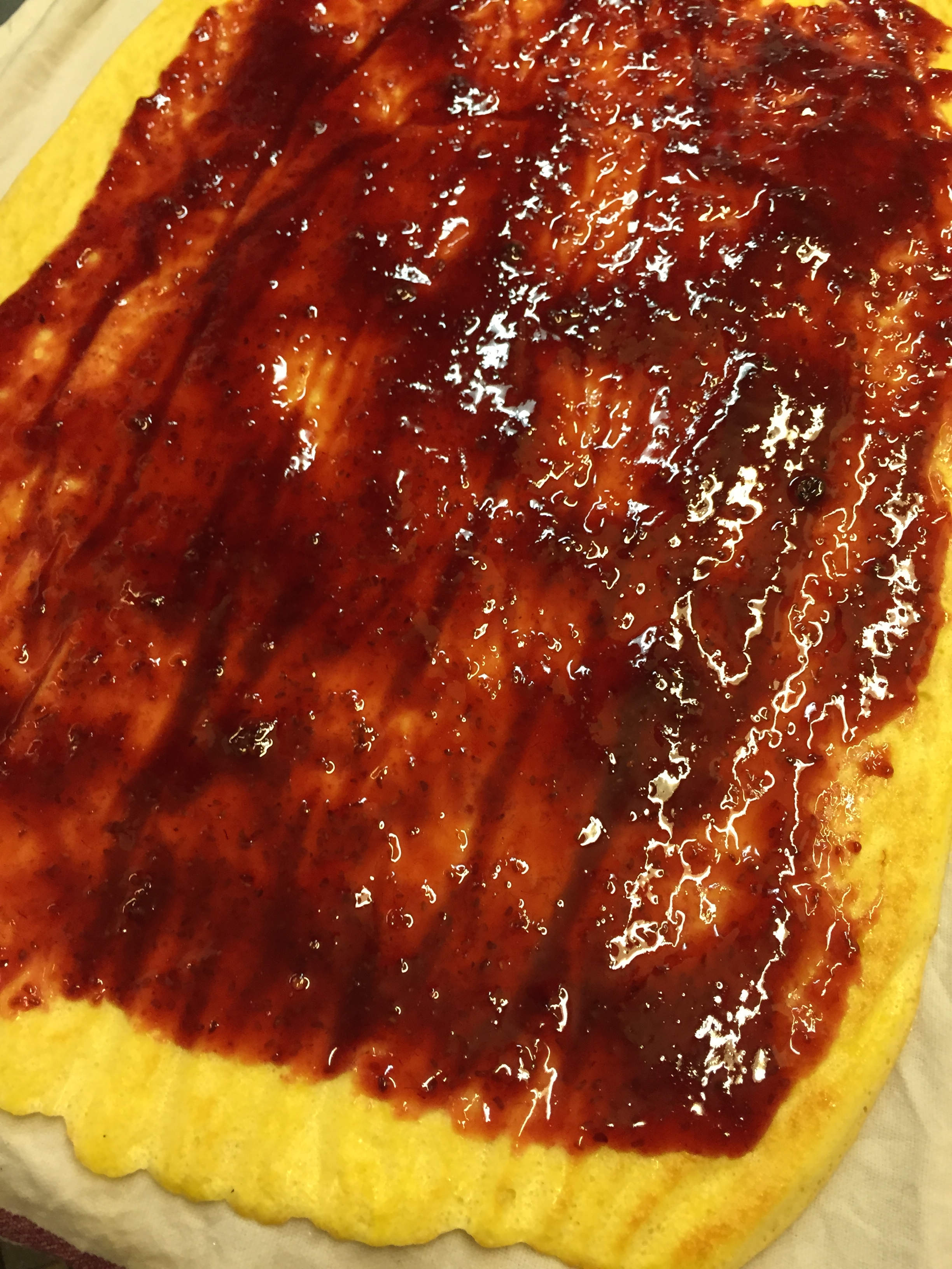 Roulez votre biscuit avec la confiture et coupez-le en petit tronçon