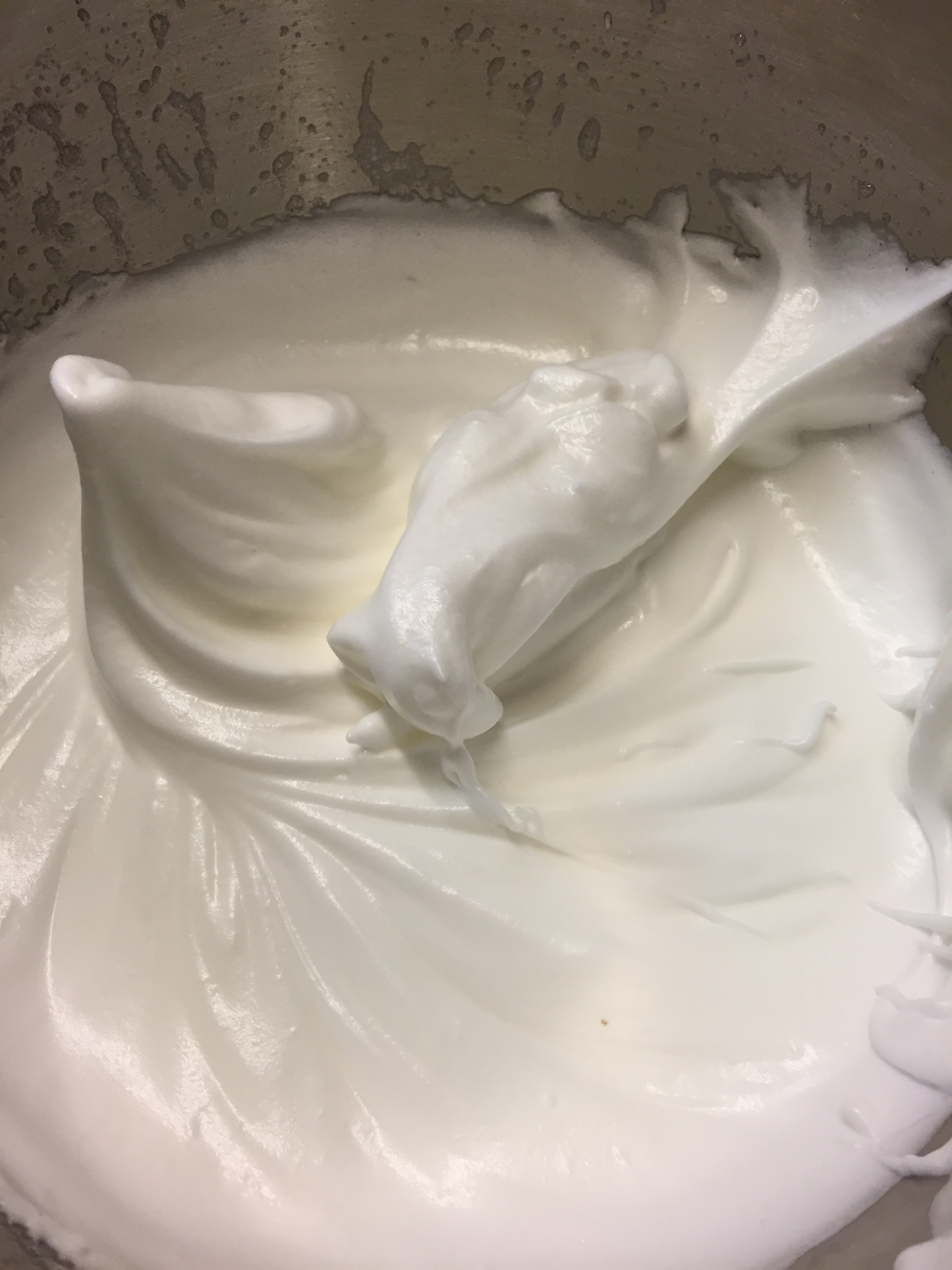 Mettez dans votre batteur les blancs d’oeufs et le sucre
