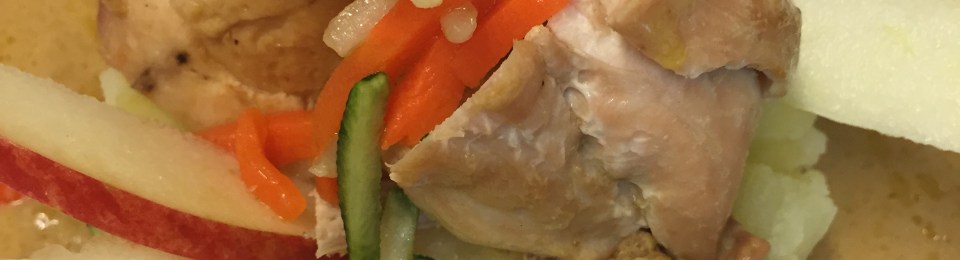 Alors là, après tous ces desserts, je me suis dit « stop ». Un petit plat salé et sympa, ça va changer. C’était le week-end dernier, quand on était chez Laurence, ma copine de fac. Oui, bon, depuis, les années ont passées, je sais, mais ce jour là j’ai cuisiné chez elle une mignardise ou plutôt un médaillon de volaille du poulet, bien sûr au foie gras, avec sauce foie gras et petit purée maison. Et oui, faut ce qu’il faut.