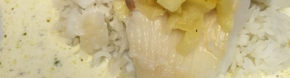 Vous ne connaissez pas encore Marthe, une amie d’enfance qui habite Nancy ? Elle est venue pour les fêtes avec son petit bonhomme (son fils) et elle a beaucoup de mal à lui faire manger du poisson. En plus, il adore les pommes. Le fruit, pas les pommes de terre, hé. Donc, j’ai trouvé dans la tête de Boby une recette entièrement improvisé et voila le résultat. Super bon, beaucoup de goût et le petit bonhomme a tout mangé. Opération réussie. Merci Boby.