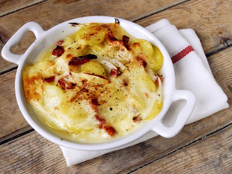 5. Enfournez à 180 °C pendant environ 15 minutes, le Reblochon doit être bien gratiné sur le dessus.