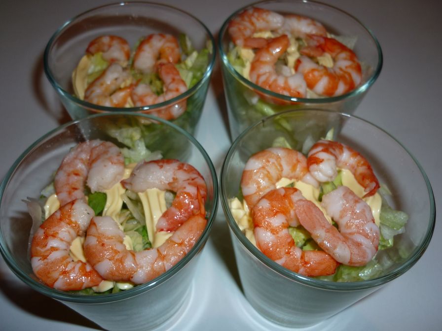 Pendant ce temps, tapisser chaque fond de verrine d’un peu de laitue.