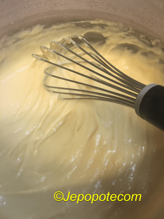 Dans une casserole faite chauffer le lait et la crème,quand ces à ébullition ajouter votre préparation en fouettant jusqu’à obtenir une crème épaisse.