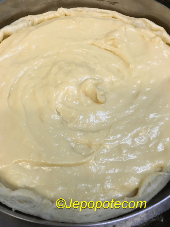 Verser le tout dans votre tarte qui est précuite,et remettre au four 30mnt à 180 degré,jusqu’à coloration de votre flan.