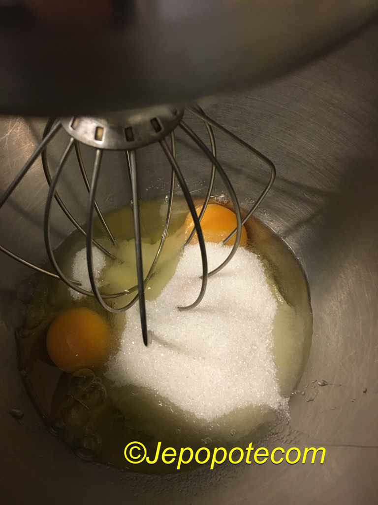Battez les oeufs entiers avec le sucre pendant 10 mnt ajoutez la vanille suivant votre goût, pour moi c’est une bonne cuil à café