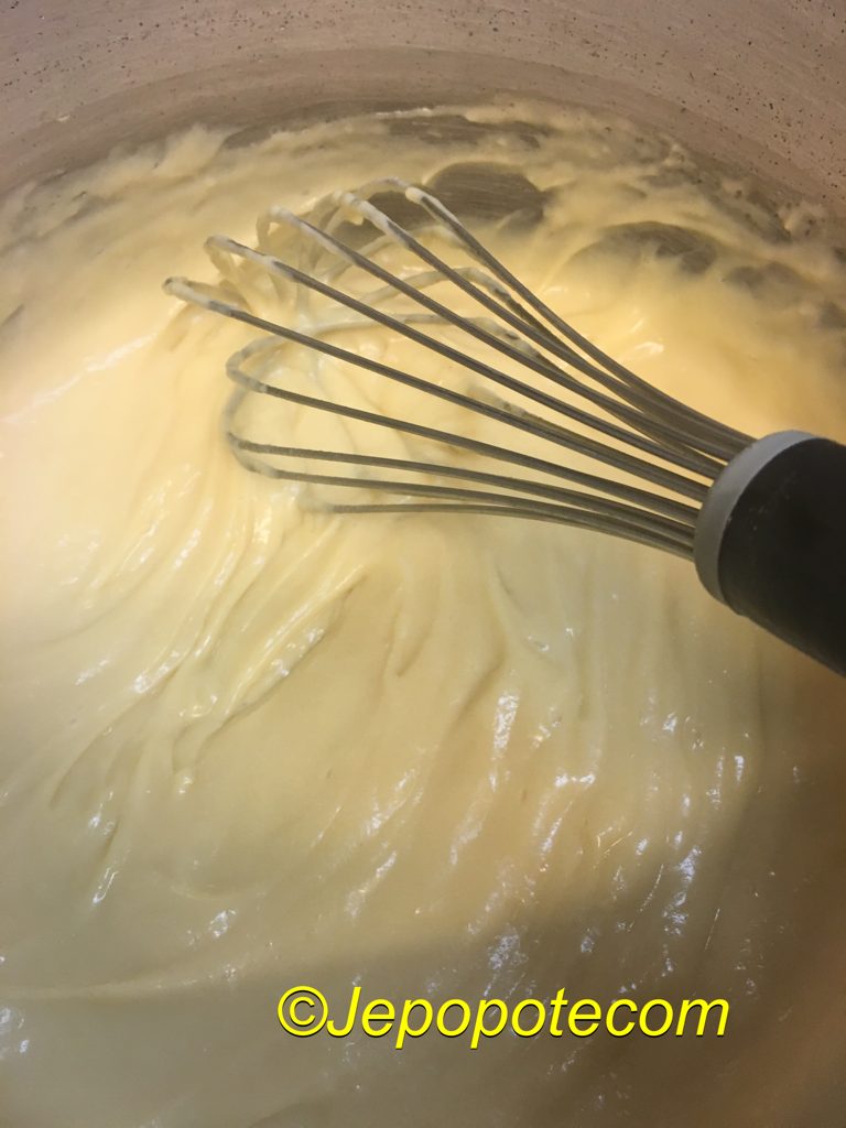 Dans une casserole faite chauffer le lait et la crème,quand ces à ébullition ajouter votre préparation en fouettant jusqu’à obtenir une crème épaisse.