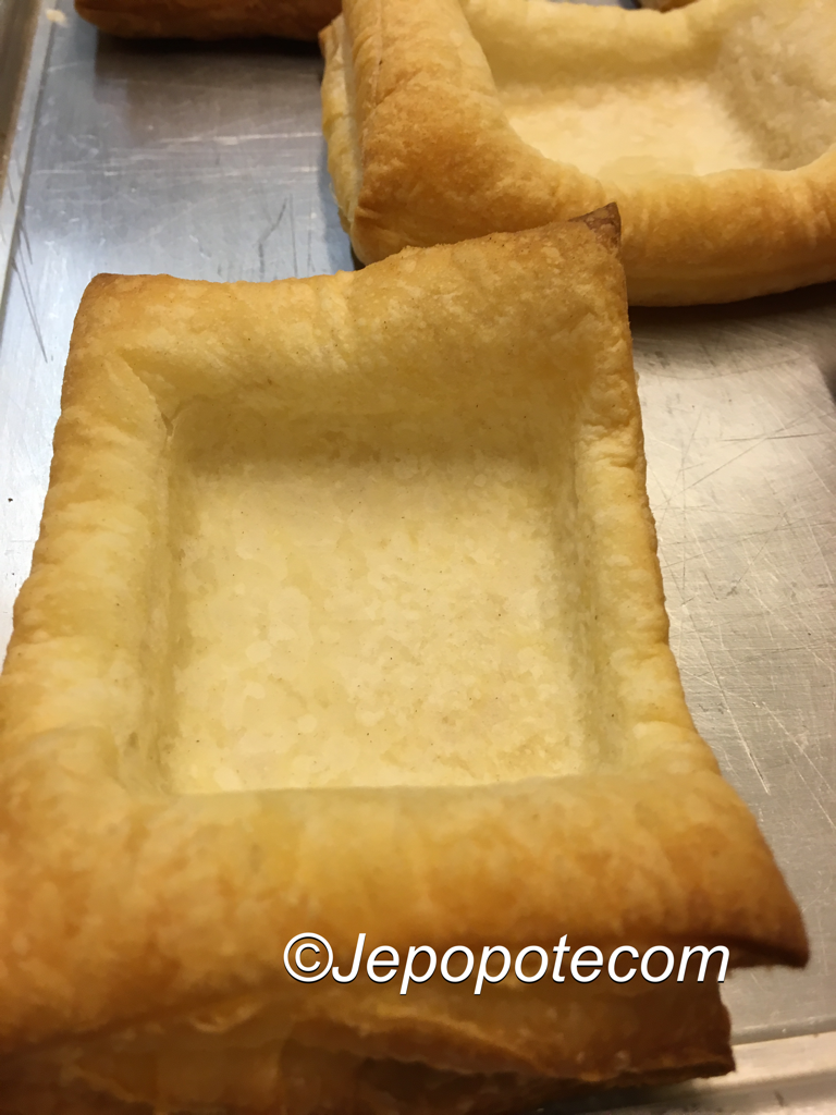 Allumer le four à 180c .sur vos carrés de pâte feuilletée mettre un moule plus petit pour que la pâte feuilletée ne montent sur sur les côtés et pas au milieu.
