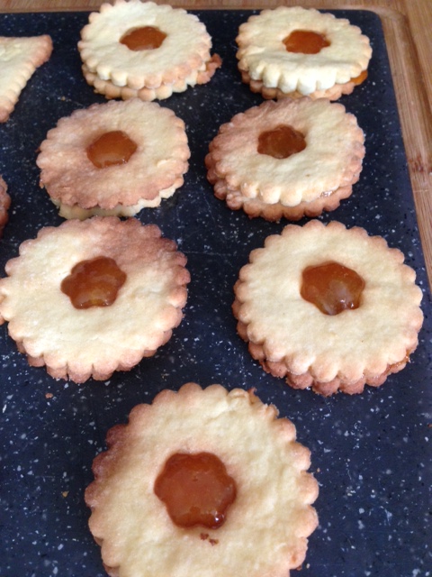Assemblez les sablés pleins et creux avec de la confiture.