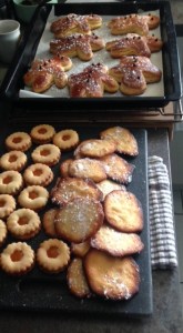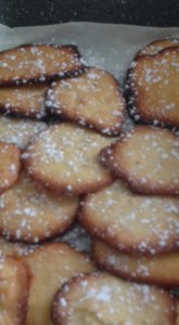 Sur la plaque du four garnie d’un papier de cuisson déposez des petits tas (l’équivalent d’une petite cuillère à café) assez espacés. Étalez ces petits tas avec le dos d’une fourchette trempé dans de l’eau froide.