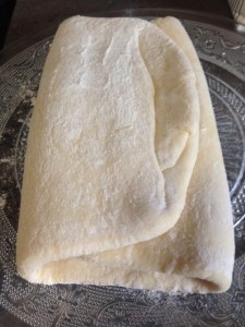 Aplatissez de nouveau la pâte, pliez-la en 3, filmez-la et mettez-la ensuite 1heure au frigo.