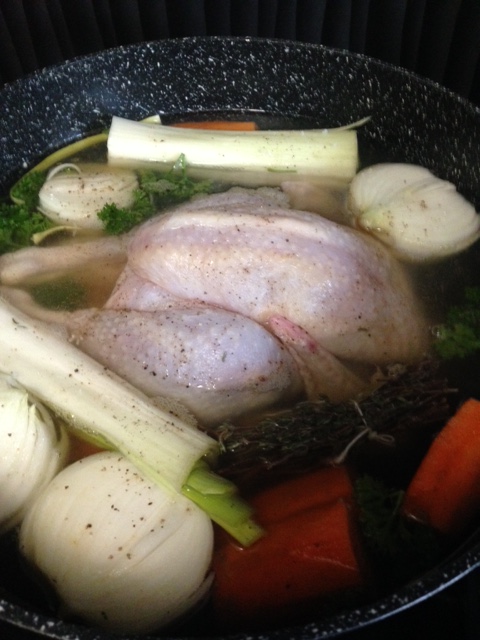 Déposez tout d’abord votre poule dans une marmite ou une cocotte. Recouvrez-la d’eau froide, éplucher, laver et couper les légumes en gros morceaux