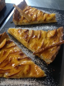 Des recettes de tartes fines aux pommes préconisent une pâte sablée ou une même pâte brisée. Je trouve que la pâte feuilletée est la plus adaptée à ce dessert que l’on souhaite léger et croustillant.