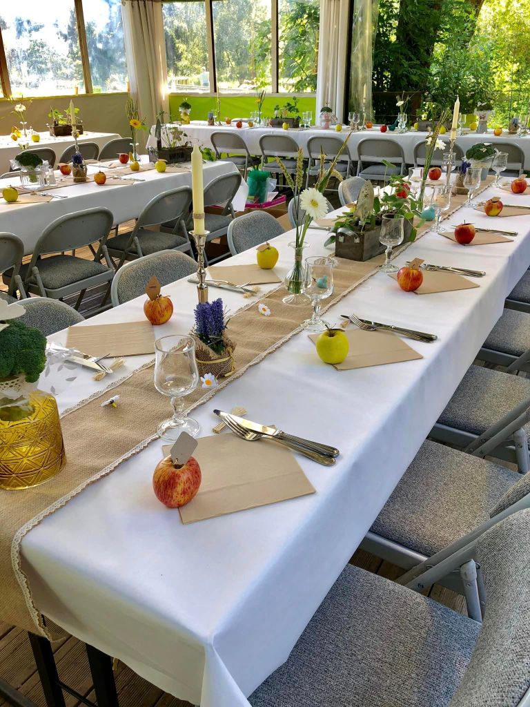Pour cela, il ne vous faut pas grand chose : une nappe, quelques bougies et des éléments de déco comme des portes-noms pour que vos invités sachent où s’asseoir; des bougeoirs, des pommes, des chocolats, de jolies serviettes, des pommes de pain, du houx.