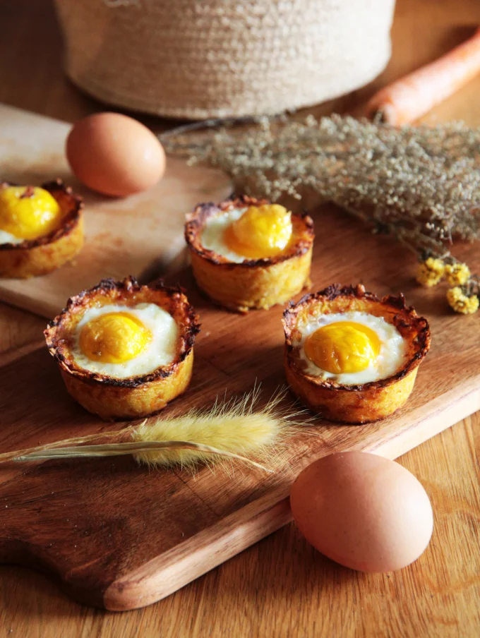 Disposer la préparation dans des moules à muffin en formant des nids.