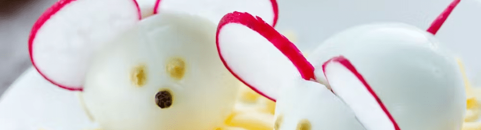 C’est une idée ingénieuse pour faire manger des œufs aux enfants. Il suffit d’associer un œuf dur à du fromage de type emmental et de le décorer à l’aide de quelques radis. Et voilà une petite souris ! Ce peut être une entrée pour le repas de Pâques.