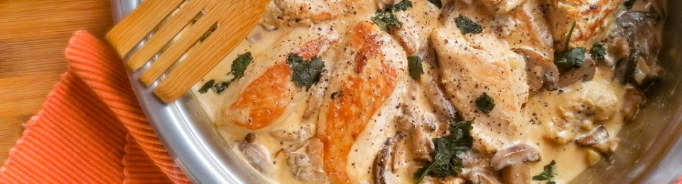 - Incorporation de la crème : Ajoutez la crème fraîche dans la poêle, mélangez bien et laissez mijoter pendant 3 à 4 minutes pour que la sauce épaississe légèrement. Rectifiez l’assaisonnement avec du sel et du poivre.