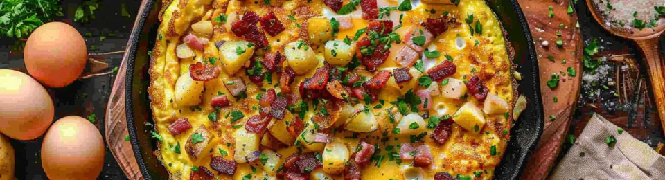 L’omelette aux pommes de terre et lardons est un plat traditionnel réconfortant qui allie simplicité et saveurs authentiques. Parfaite pour un brunch copieux ou un dîner léger