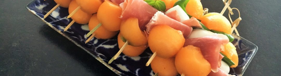 - Sur chaque brochette, alternez les morceaux de melon, les tranches de jambon et les morceaux de mozzarella.