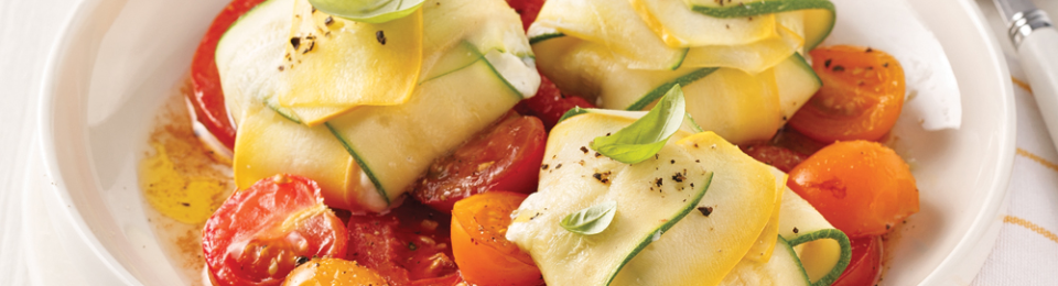 - Placez les ravioles de courgettes farcies sur les tomates dans le plat. Enfournez pendant environ 20 minutes, ou jusqu’à ce que les courgettes soient tendres et que la farce soit légèrement dorée.