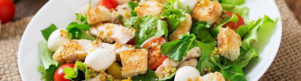 - Ajouter les dés de poulet, les tomates, le concombre, et la mozzarella dans le saladier.