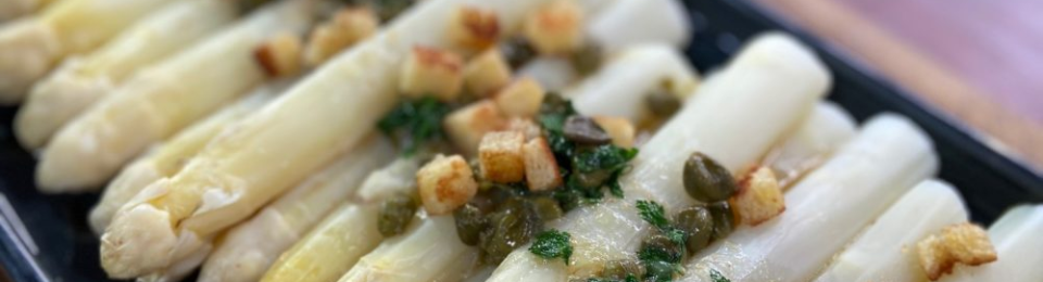 Les asperges blanches, cultivées principalement en Europe, notamment en France, en Allemagne et aux Pays-Bas, sont récoltées avant qu’elles ne soient exposées à la lumière du soleil, ce qui leur confère une couleur pâle. Ce plat est souvent servi en entrée ou comme plat principal léger, et il est particulièrement populaire à la période du printemps, lorsque les asperges sont à leur apogée.