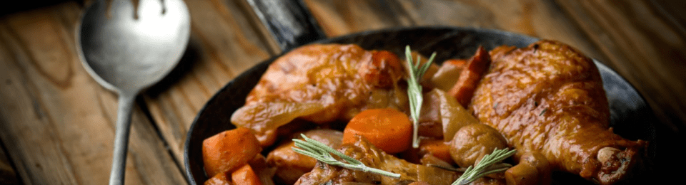 - Déglacer : Remettez les morceaux de volaille dans la casserole. Versez le vin rouge et le bouillon de volaille. Mélangez bien.