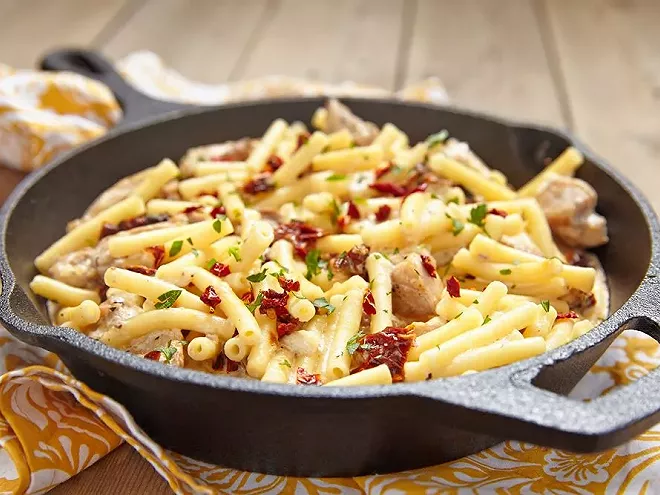 Pour cette recette de Macaronis poêlés au poulet et tomates séchées, vous pouvez compter 10 minutes de préparation.