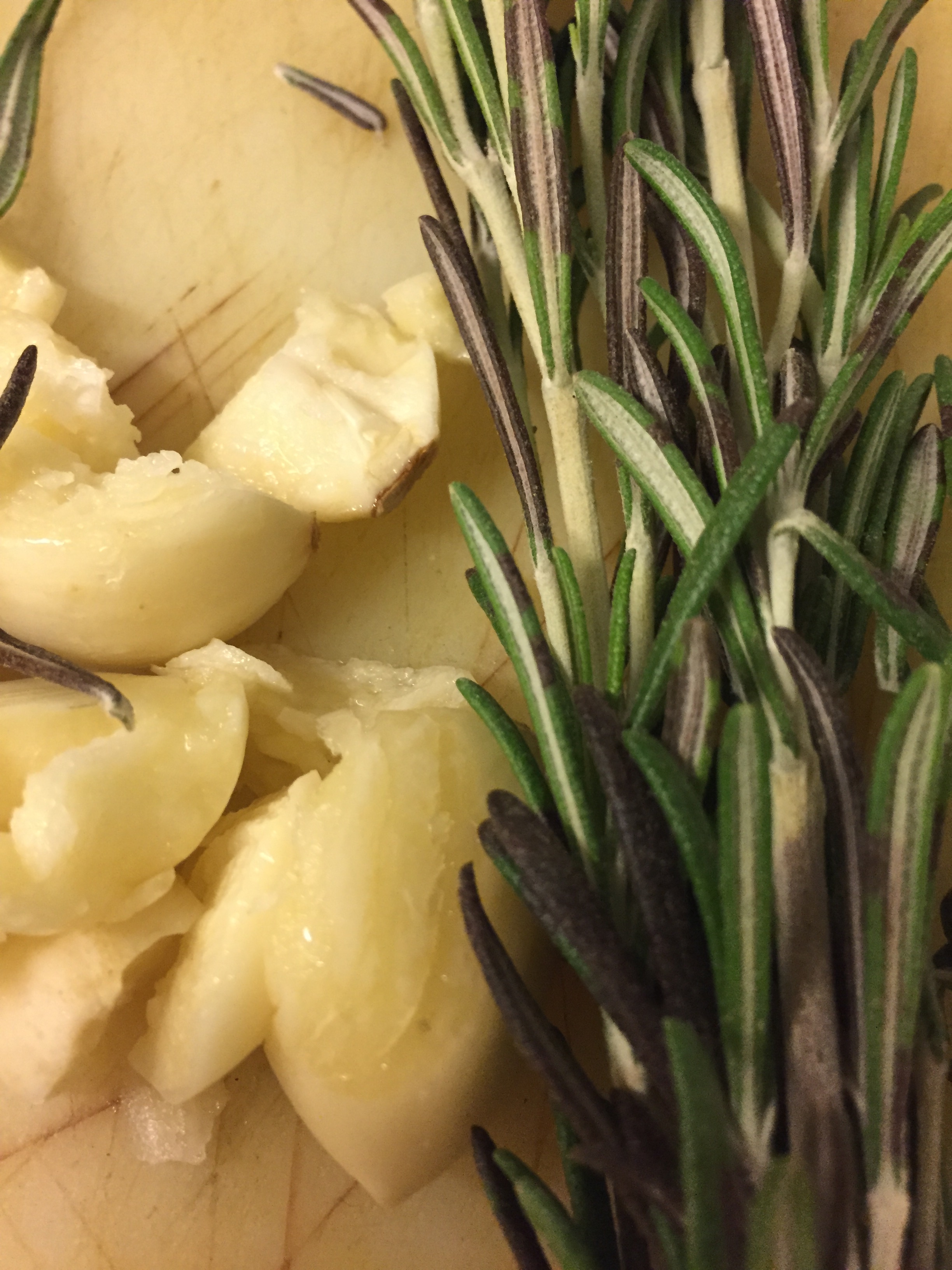le romarin, 2 têtes d’ails, le restant de votre huile aux herbes et 1 cuil. à soupe d’herbes de provence