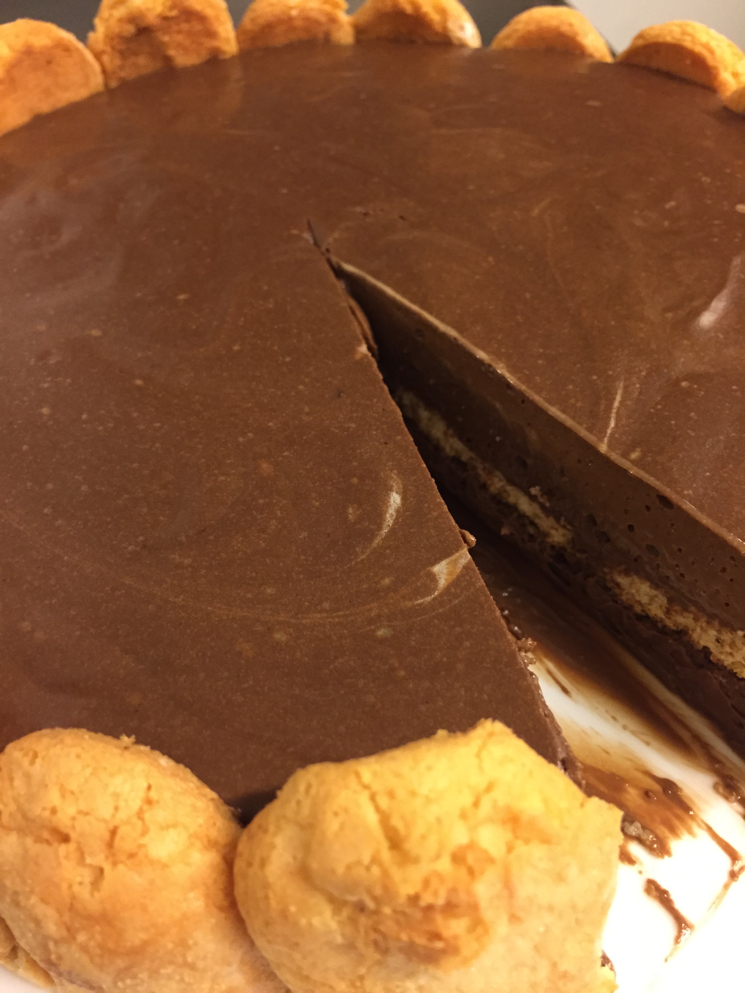 découper des biscuits cuillères dans la longueur et les mettre sur la mousse
